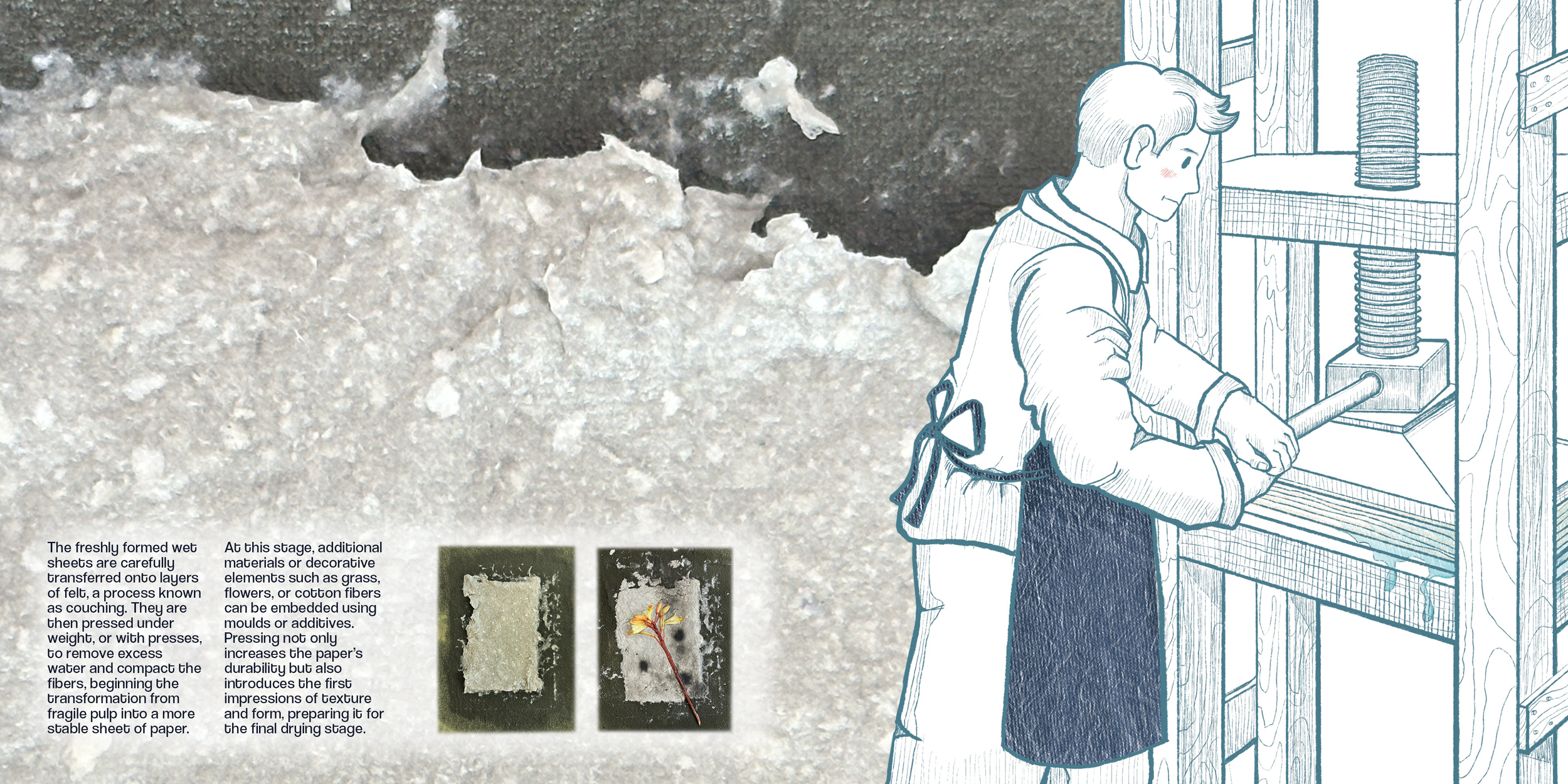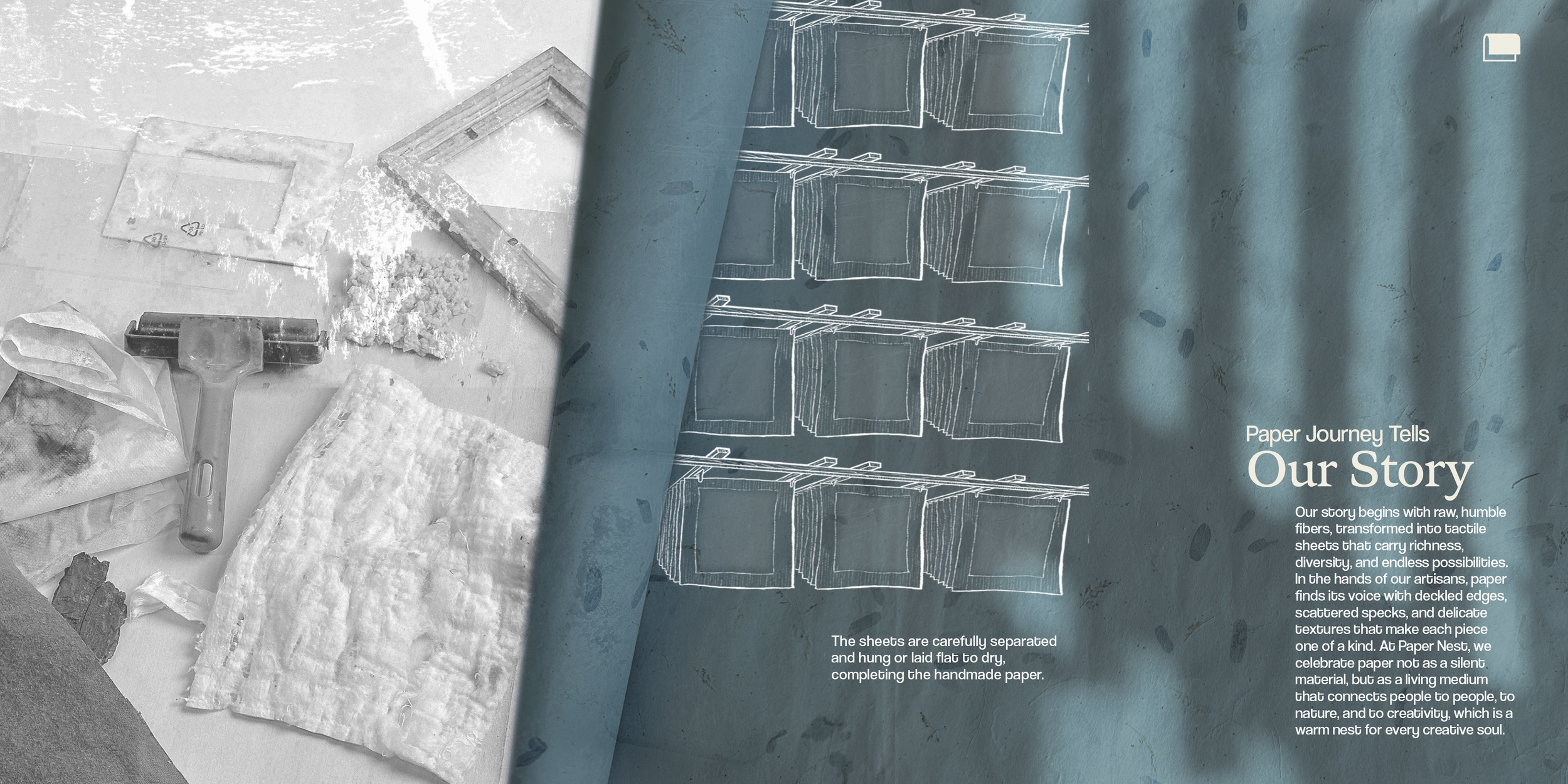 These observations became the foundation for developing the brand identity, allowing the handmade papermaking process itself to speak through the visual and spatial language of the design.